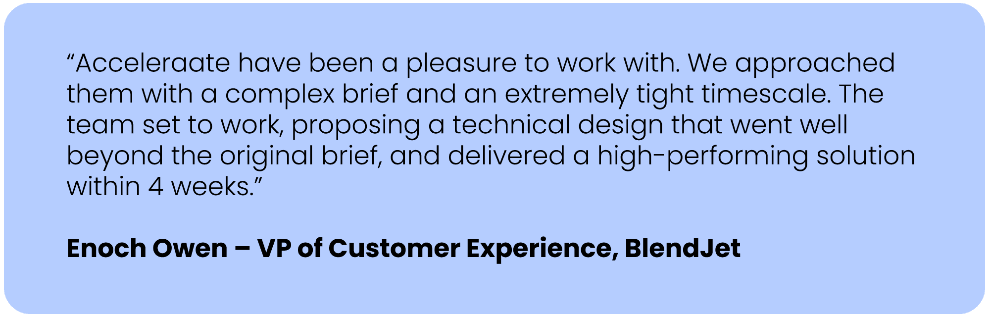 Acceleraate delivered the project end-to-end within a challenging 4-week timescale.